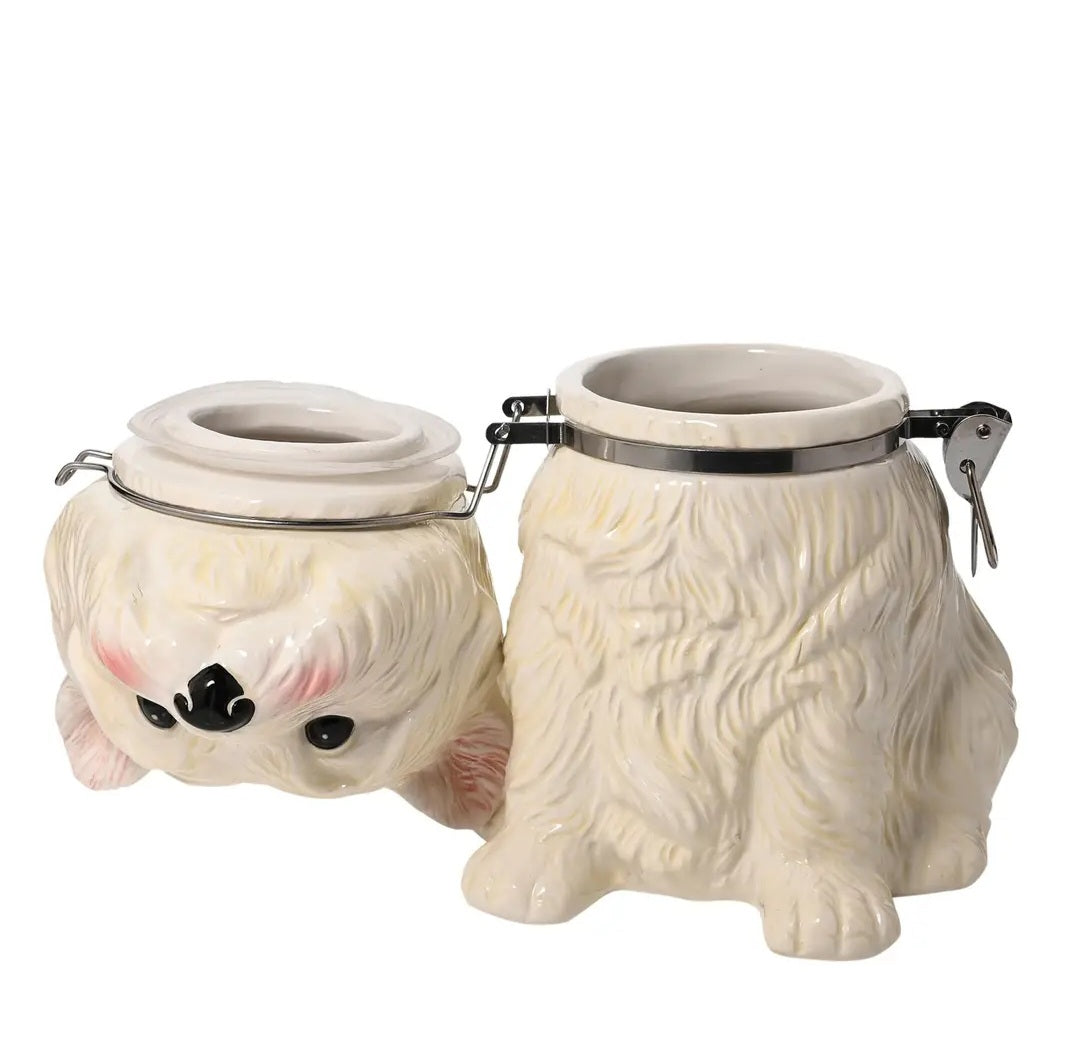 Fabriqué en dolomite, solide et plein de charme, il cache un vrai trésor à l’intérieur : assez de place pour stocker biscuits, friandises ou bonbons. Grâce à sa tête amovible trop mignonne 🐕💖, vous gardez vos douceurs bien à l’abri… sauf si votre Westie a trouvé la technique pour ouvrir ! 😉