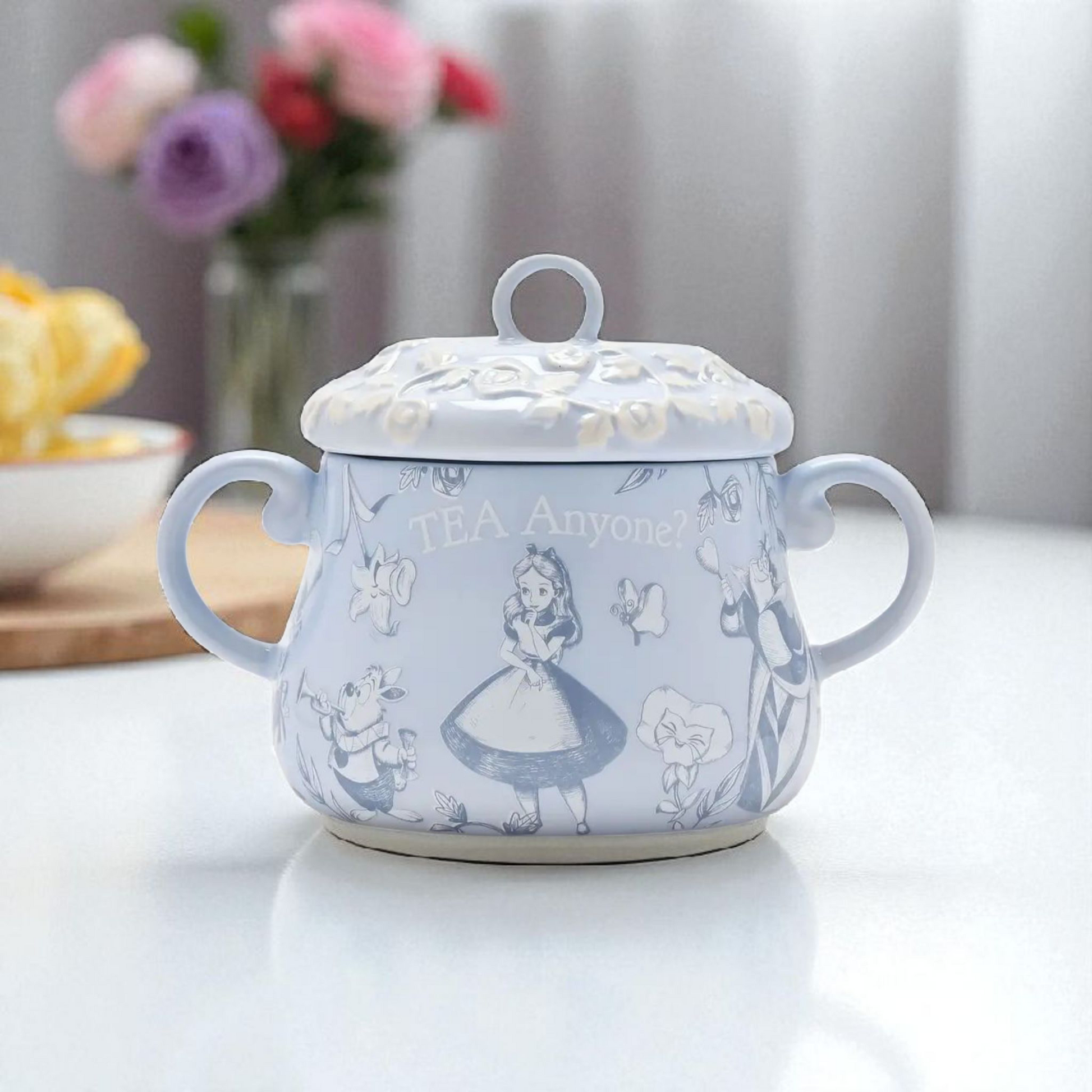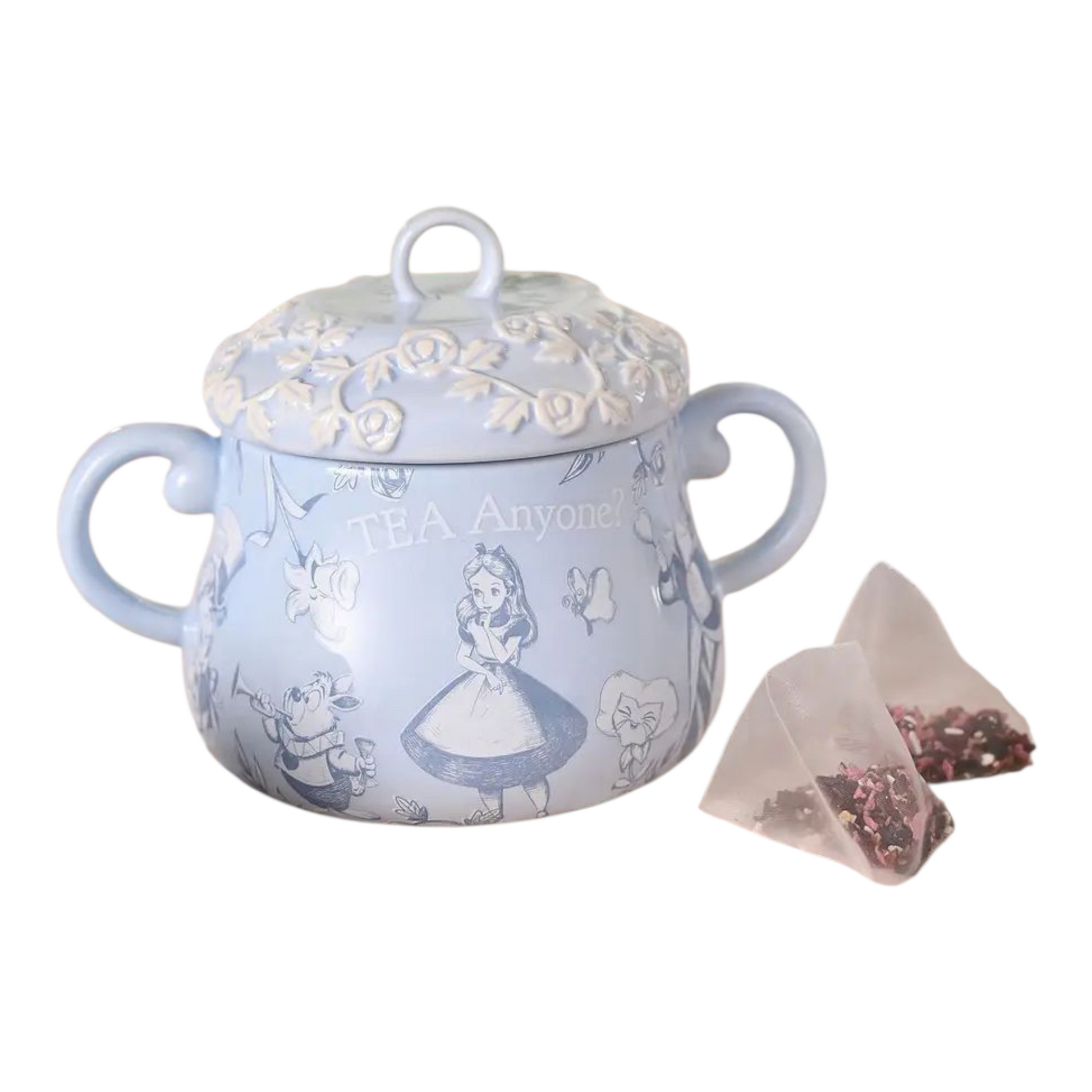 Ajoutez une touche féérique à votre intérieur avec cette boîte Disney officielle inspirée d’Alice au Pays des Merveilles. Fabriquée en céramique émaillée bleu clair & beige, elle met en valeur Alice dans un design raffiné et magique.