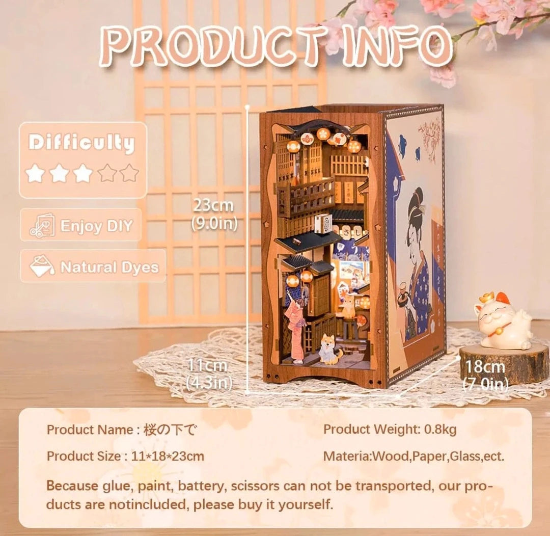 Glissez un petit monde poétique entre vos livres ! Ce serre-livre en bois à assembler recrée une scène « Sous le cerisier en fleurs » et s’illumine grâce à son système LED (alimentation 2× LR3/AAA, non incluses). Les pièces sont prédécoupées et la notice couleur détaillée vous guide pas à pas pour un résultat propre et durable.