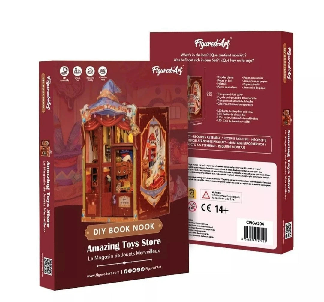 Créez une échoppe enchantée qui se glisse entre vos livres ! Le Magasin de Jouets Merveilleux est un Book Nook DIY facile et ludique : les pièces en bois sont prédécoupées, l’éclairage LED met la scène en valeur, et un interrupteur tactile allume la magie en un geste. Porte ouvrable et capot anti-poussière pour préserver votre mini-monde au fil du temps.