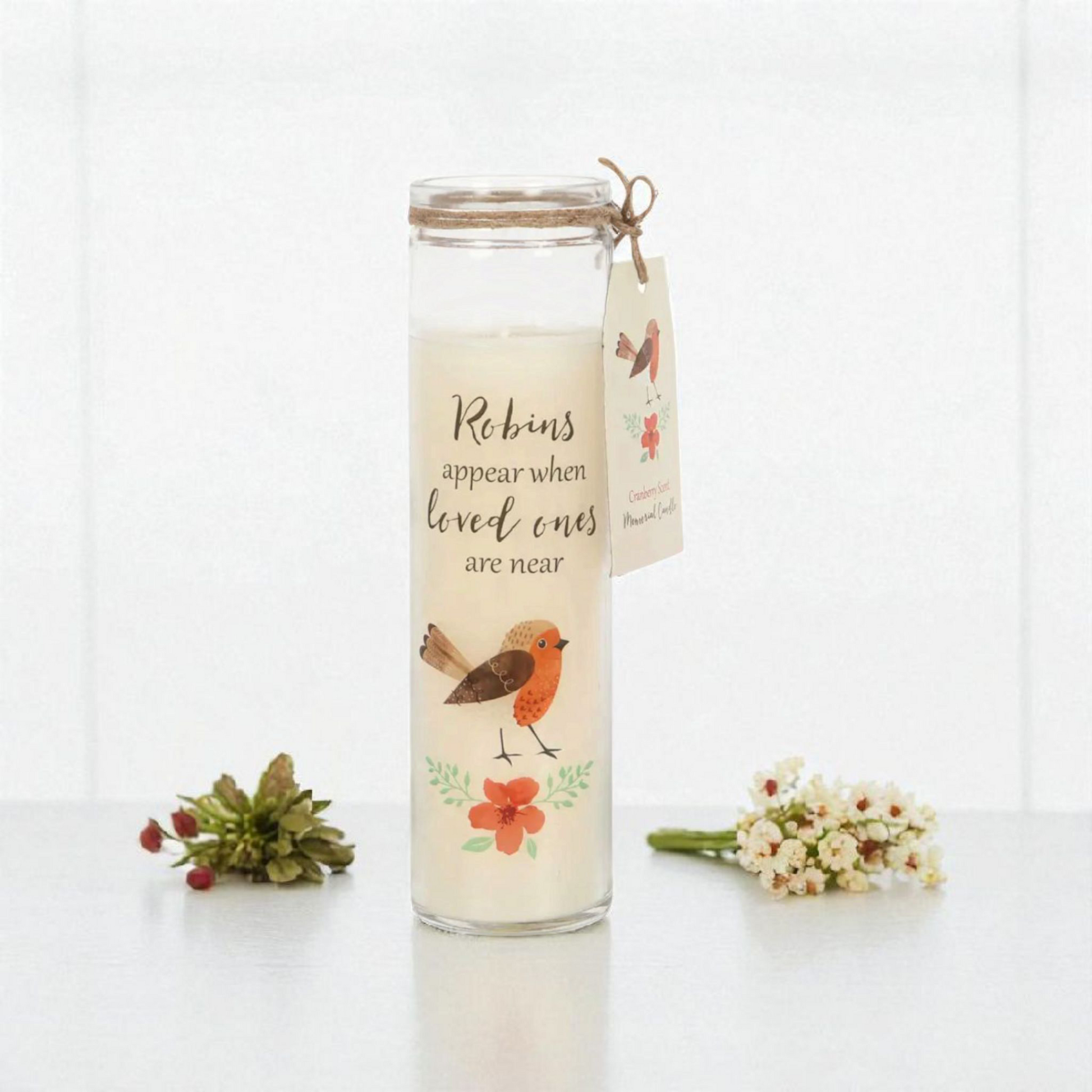 Offrez (ou offrez-vous) un instant de douceur et de réconfort avec cette magnifique bougie tubulaire parfumée à la canneberge, ornée d’un adorable rouge-gorge accompagné du message :